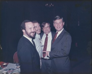 (Left to Right) Ronnie Brook, singer Jimmy Buffett, Talmadge Stuckey, Senator Bob Graham